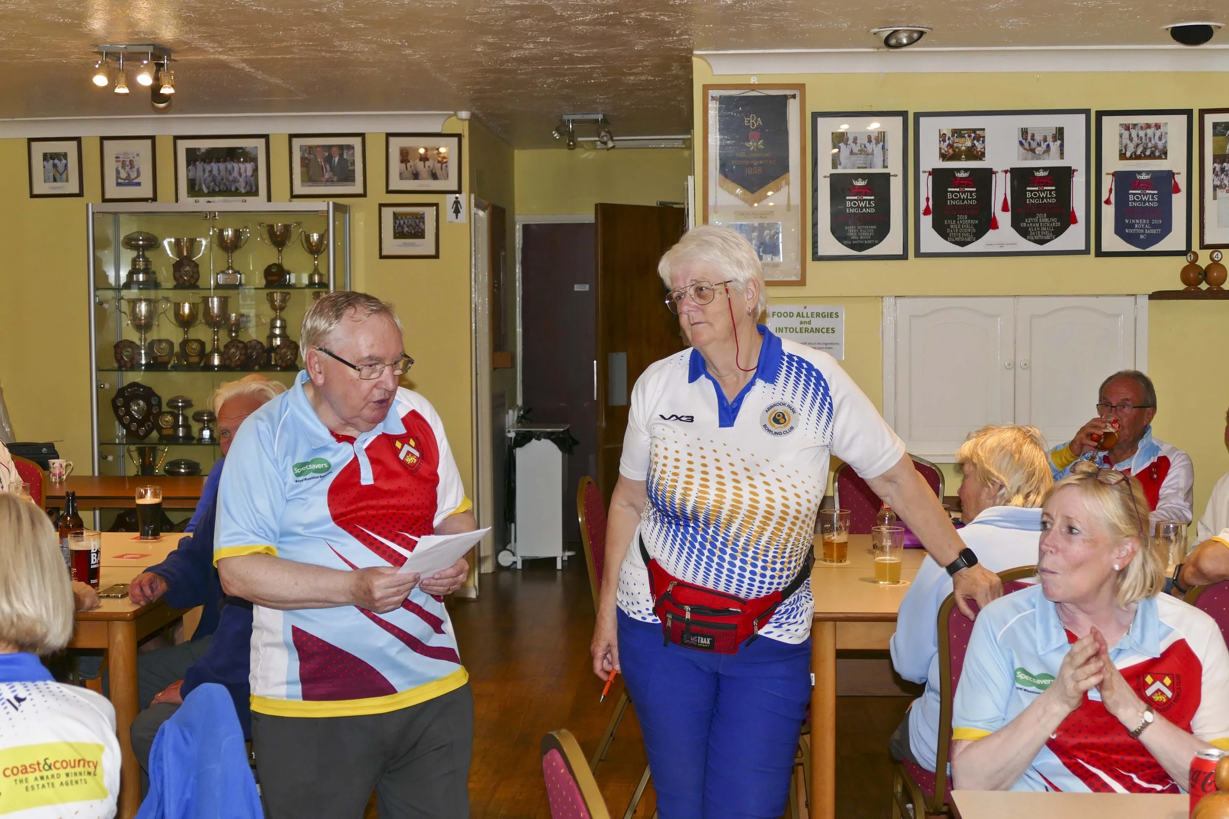 The Men's Captain, Rob Horrell, apologised for the absence of our Chairman, Tom Archer, who was playing in the National Short Mat Finals. He then welcomed everyone and introduced the Club's new main sponsor, Ashley Mathews of Coast and Country Estate Agents, who recently agreed a long-term sponsorship, which included the new shirts being worn by members.