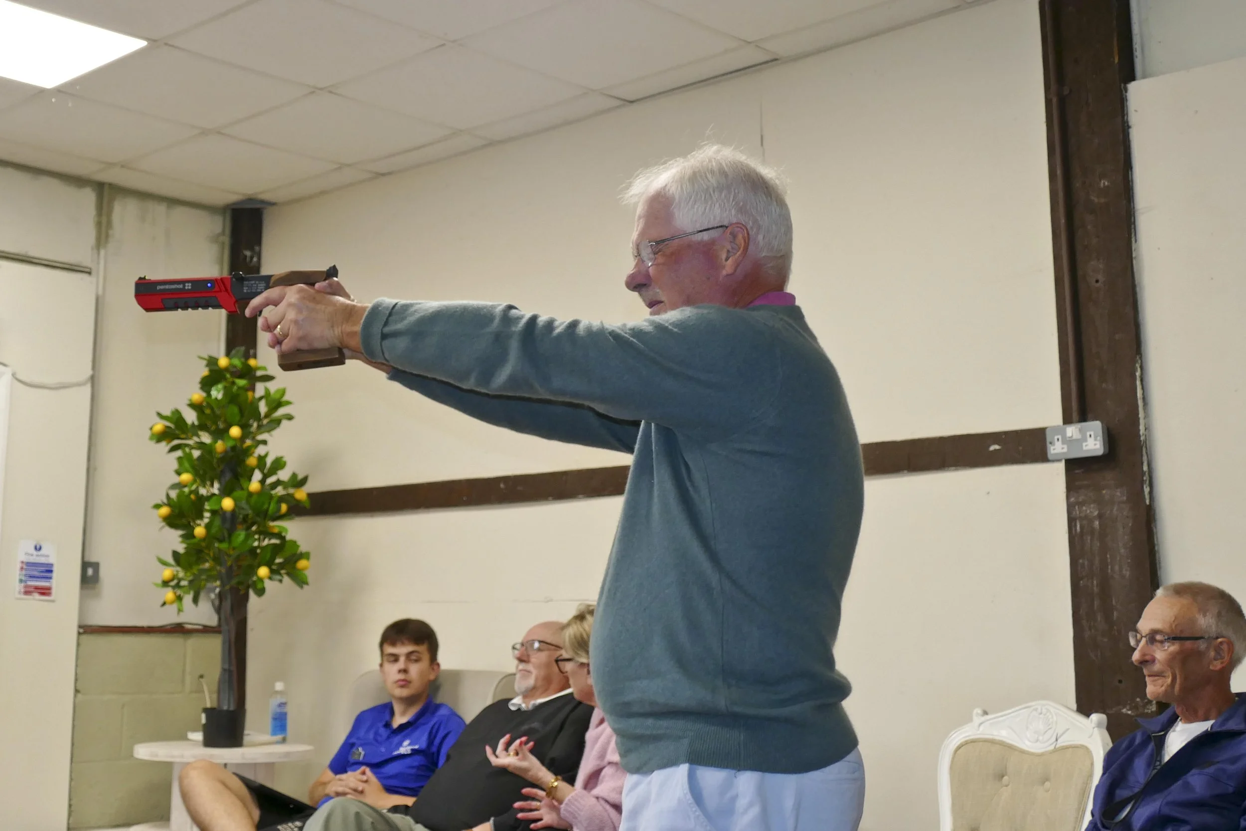 After retiring to the bar, manned by Phil Lannon and Mike Meathrel, Jeff Sharland and Nigel Coombes gave an amusingly modified rendition of Whispering Grass which, with photo's, identified the effectiveness (or not) of Rob Horrell's crow scarers!!