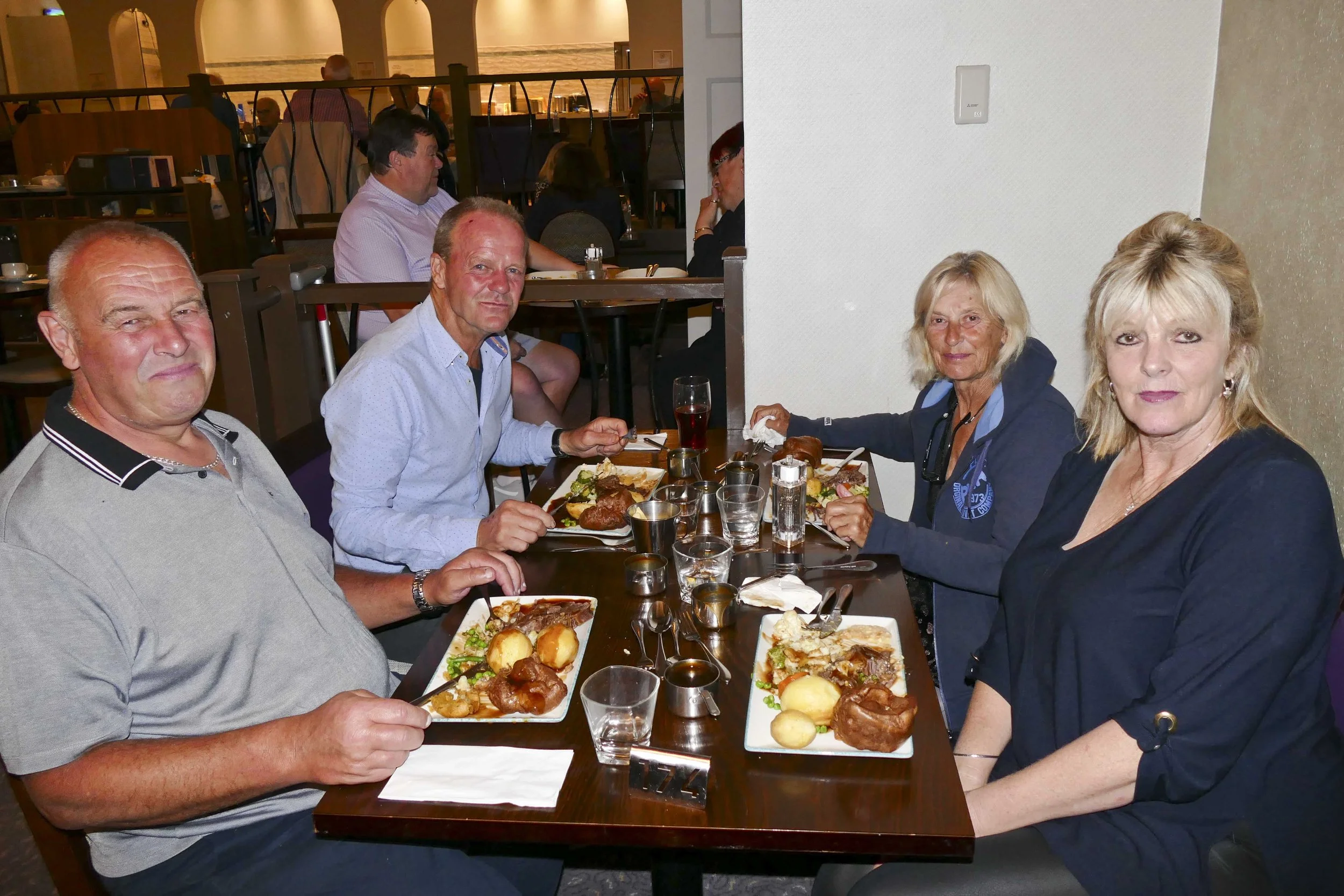 The evening finished with the presentation of flowers and wine to Barb Lawrence and (in her absence) Jean Stevens and lager for Brian Lawrence as a thank you for the work they put in every Friday evening during the winter season making ham, egg and chips for members, raising £2,000 for club fund